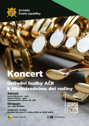 dovolujeme si pozvat Vás a Vaše rodiny na koncert Ústřední hudby Armády České republiky se sólisty naší populární scény k Mezinárodnímu dni rodin, který se uskuteční 17. května 2026 na Náměstí Míru v Jindřichově Hradci od 18.00 hod. Koncert je pořádán jako poděkování Armády České republiky všem rodinám a rodinným příslušníkům vojáků, vojenským veteránům, vojákům v činné službě a široké veřejnosti.